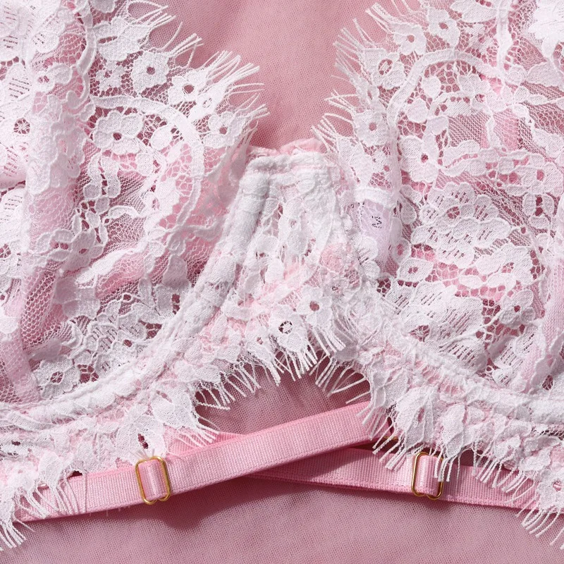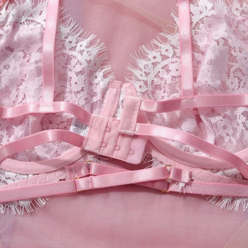 Produzido com renda fina que realça sua feminilidade, este conjunto é perfeito para quem deseja sentir-se uma verdadeira realeza.