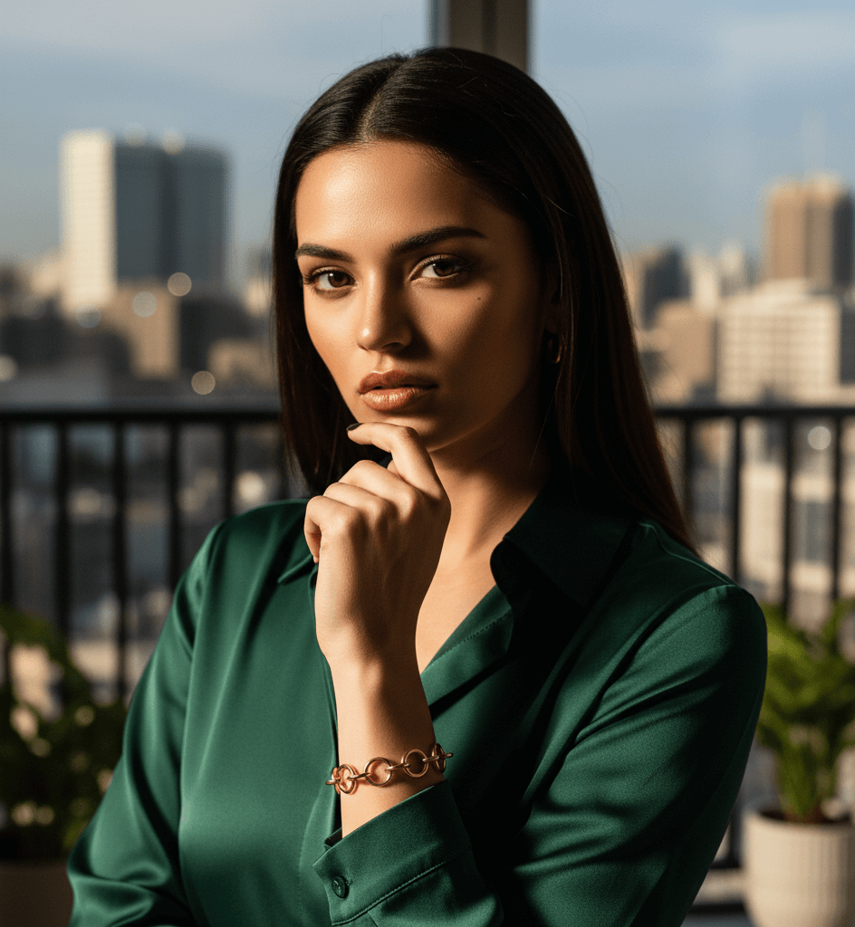 Mais do que um acessório, a Pulseira Elos de Poder é um manifesto de força e elegância. Criada para a mulher que abraça sua própria luz, esta peça celebra a beleza da jornada e a resistência de quem sabe o seu valor.