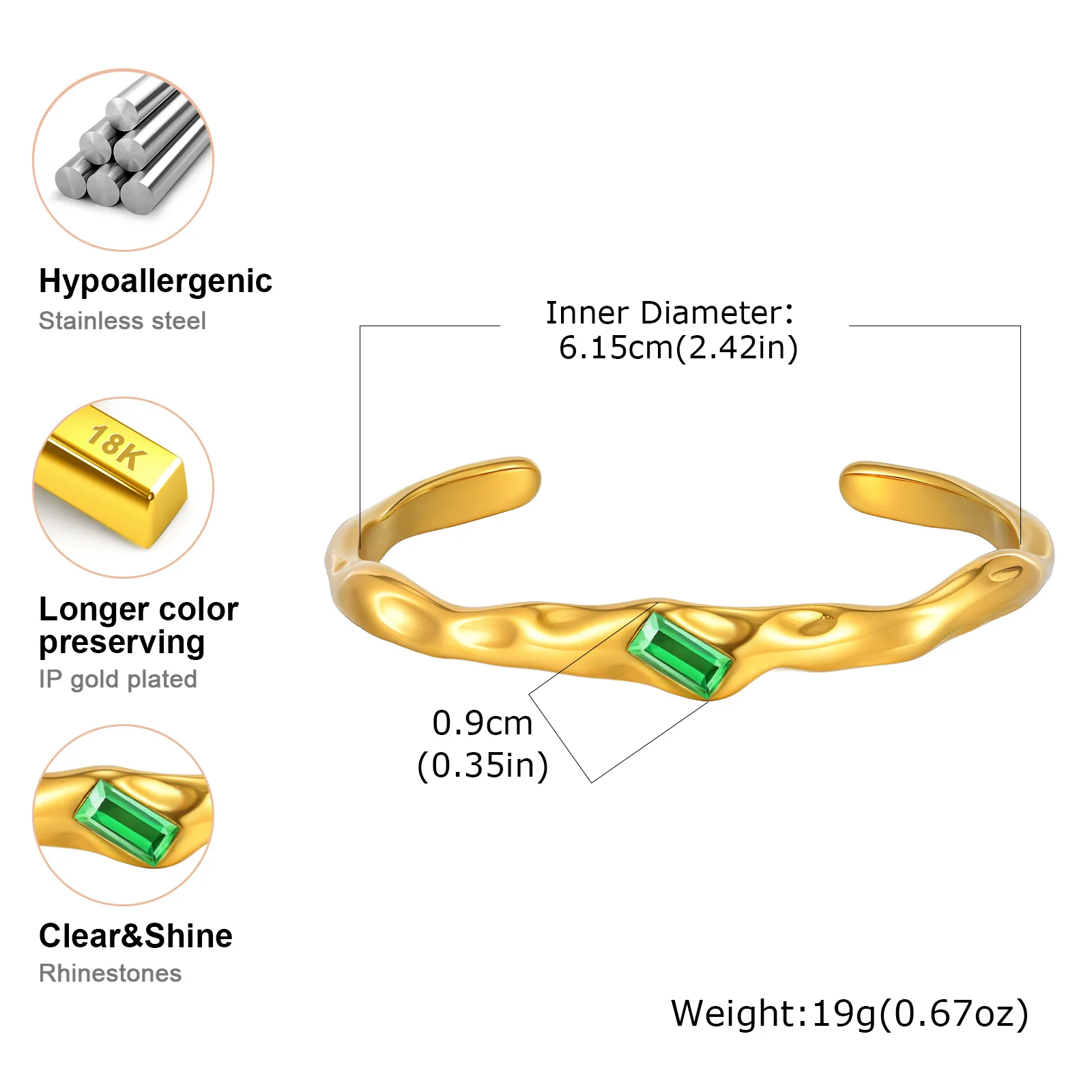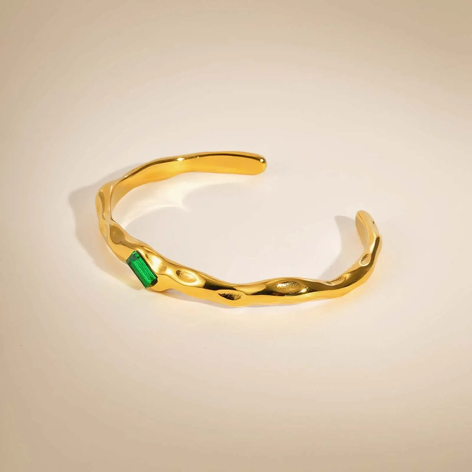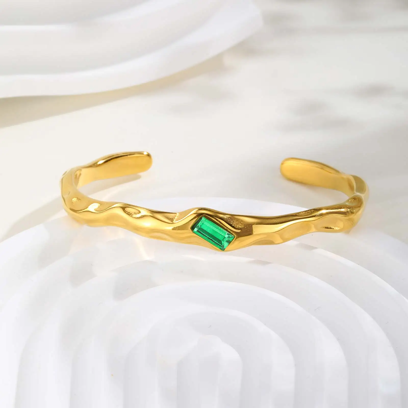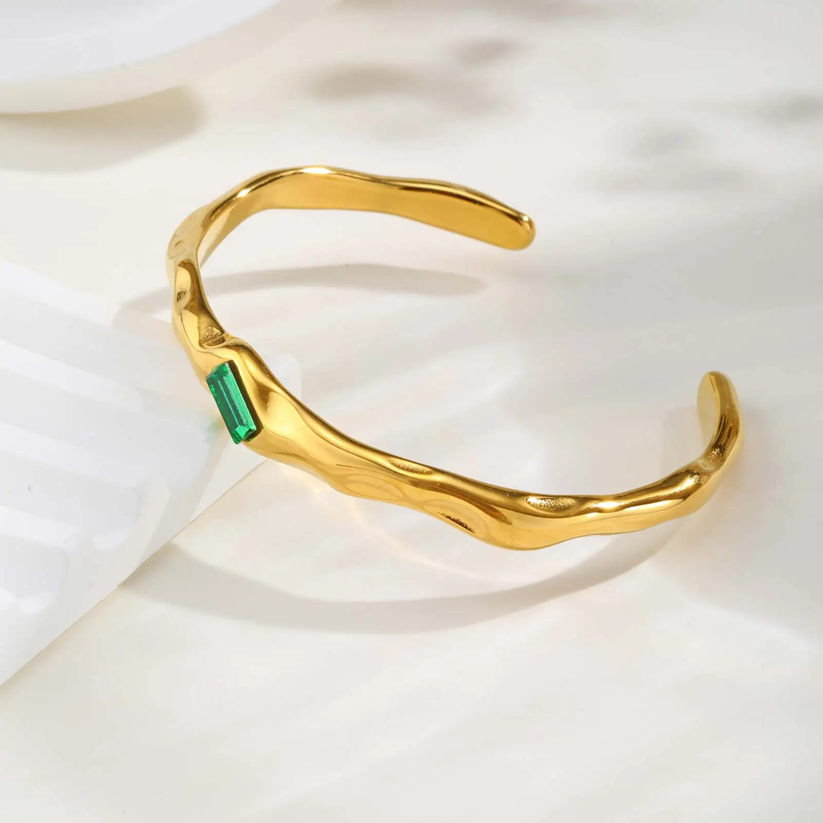 Feature: Irregular Green Zircon Opening Cuff Bracelet for Women