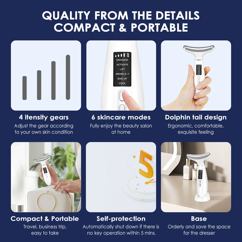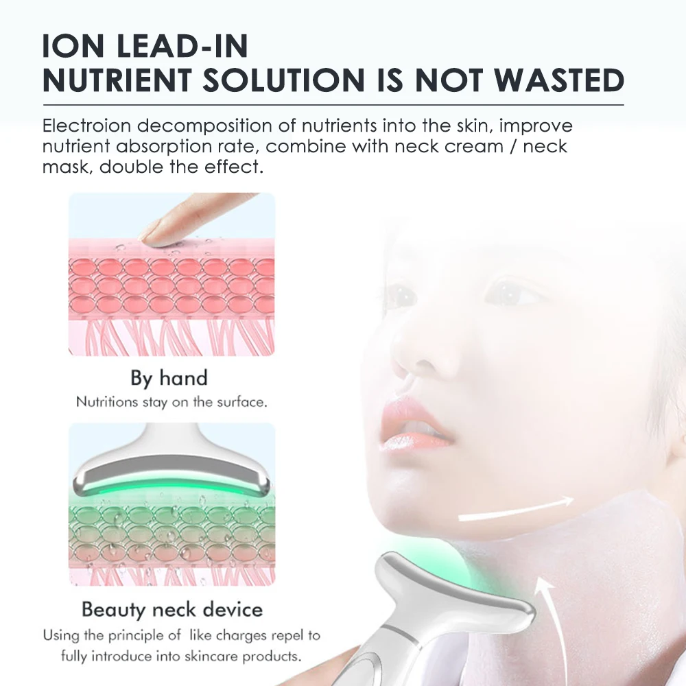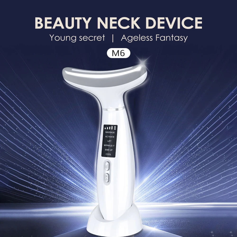 1.Instrumento elétrico multifuncional de embelezamento de pescoço, microcorrente EMS + vibração + compressa quente + luz colorida + compressa de gelo, cuidado multiefeito para o pescoço e a pele do rosto, ajuda a moldar um lindo pescoço de cisne.