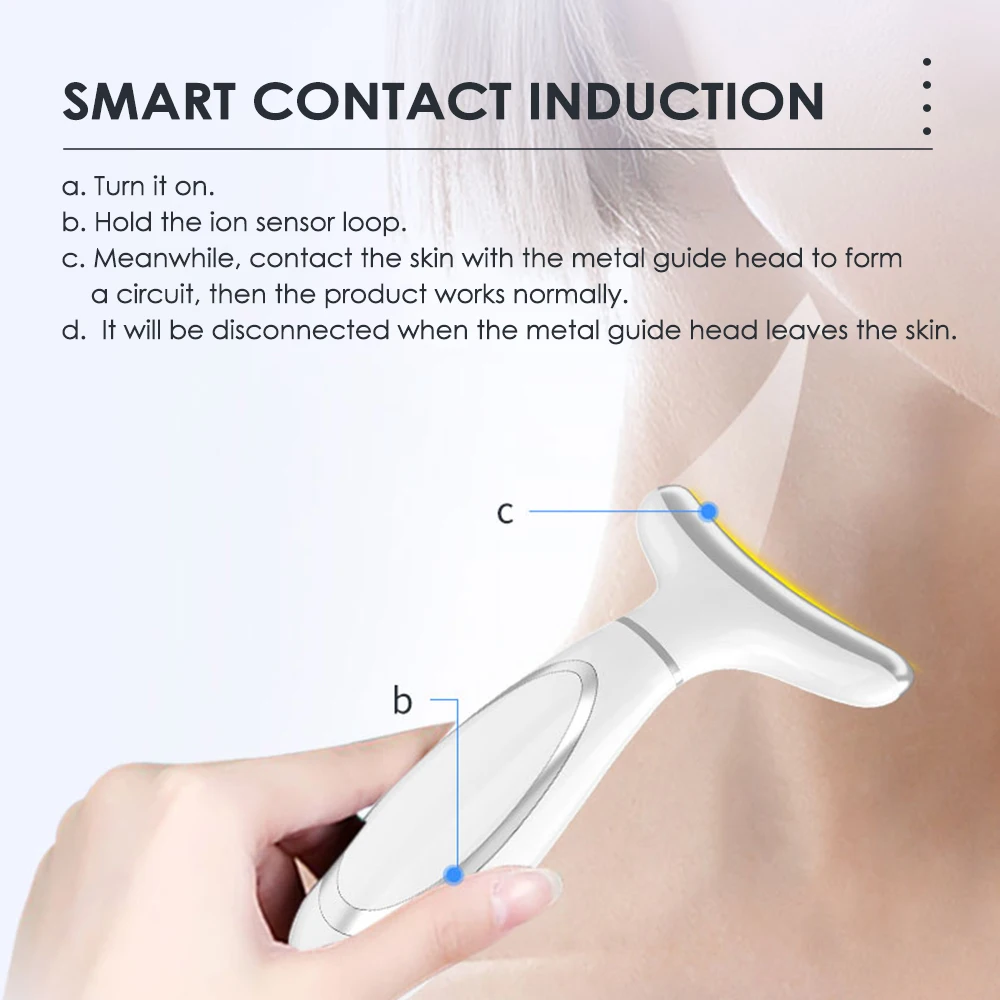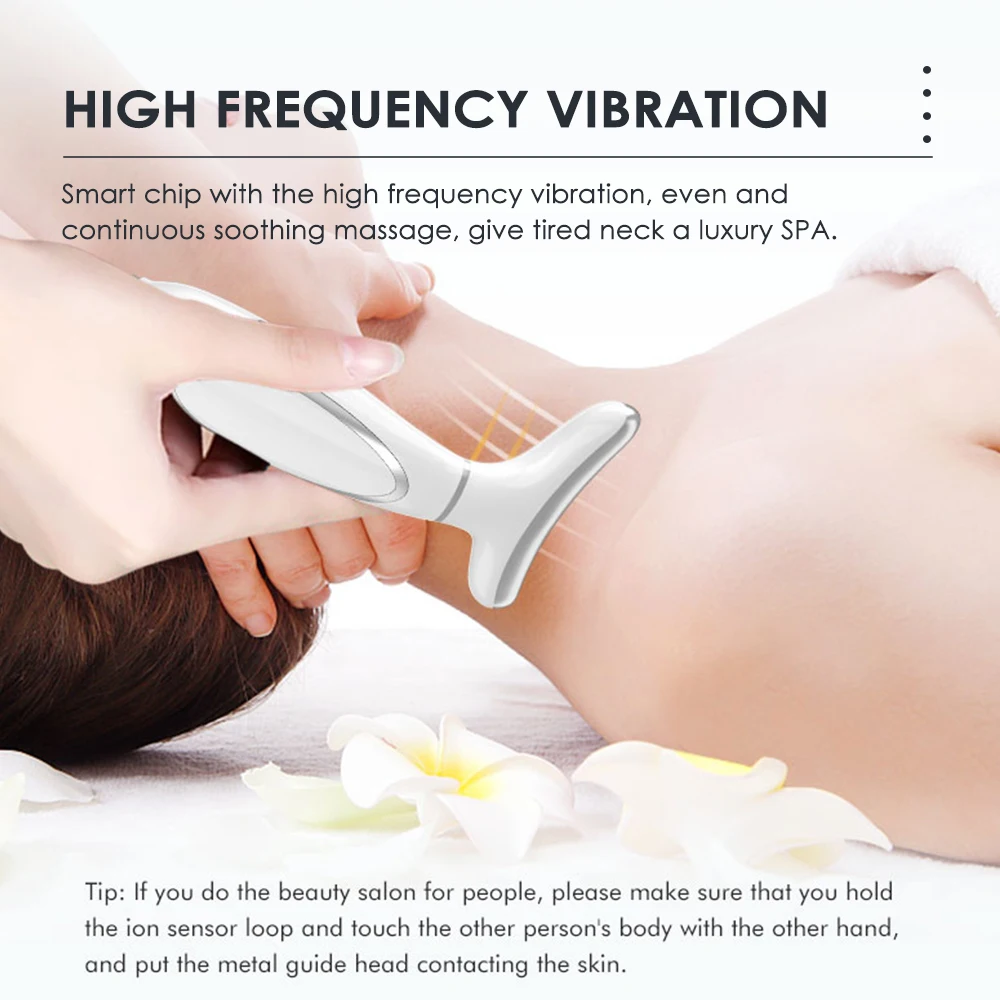 5.Este instrumento de beleza para pescoço adota o conceito de design de biônica, adota o formato de cauda de golfinho e a cabeça de massagem em forma de Y se ajusta perfeitamente às curvas da linha da mandíbula, pescoço, ombros e outras partes, e transmite energia para cada centímetro de pele.